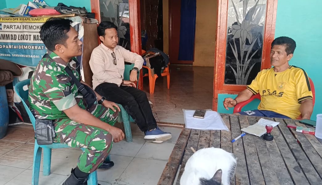 Wantaranews.com – Hamparan Perak – Serma Tri Warsono Bibinsa Koramil 0201-12/HP melakukan kegiatan komunikasi sosial bersama Bpk Rohmad (kepala Desa Selamak) & Muaz (Kepala Dusun 1 Desa Selemak) Bertempat di Kediaman Bapak Kepala Desa Selemak di Dusun III Desa Selemak Kec. H. Perak Kab. Deli Serdang.