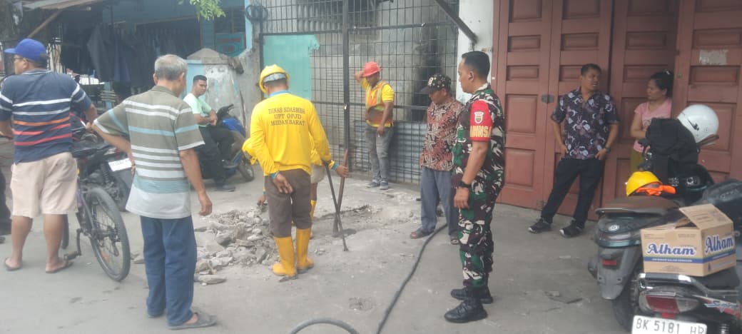 Dalam memastikan kegiatan dengan baik dan lancar, Babinsa hadir ditengah masyarakat guna memberikan dukungan semangat agar tercipta akses yang baik serta fasilitas berjalan dengan aman dan lancar sesuai dengan program pemerintah kota Medan tentang kebersihan.