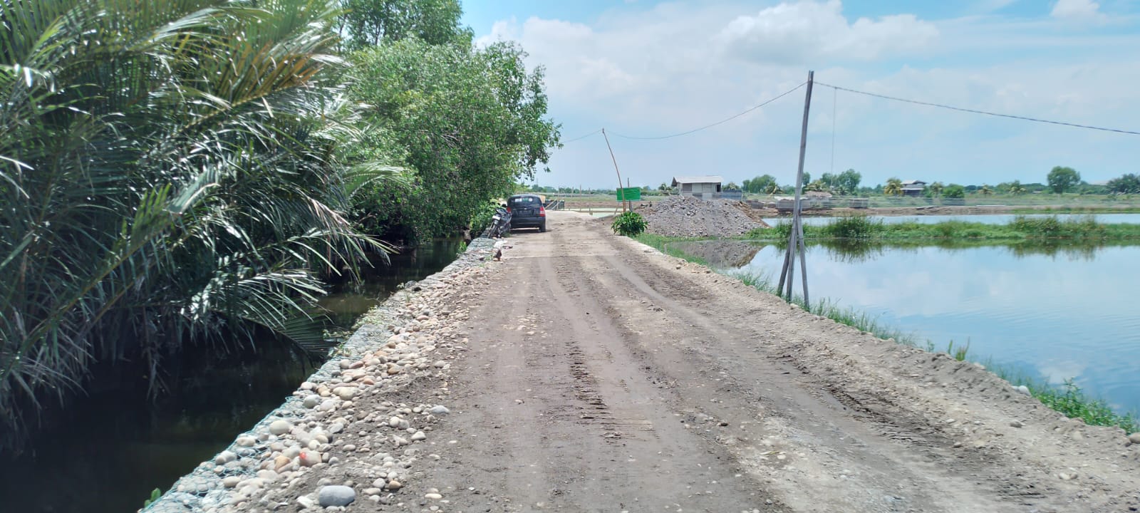 Pengerjaan jalan di lokasi tersebut memang bertujuan untuk mengubah jalan tanah yang rawan banjir menjadi jalan rigid beton yang kuat, yang sangat penting untuk mendukung akses pertanian dan tambak warga.