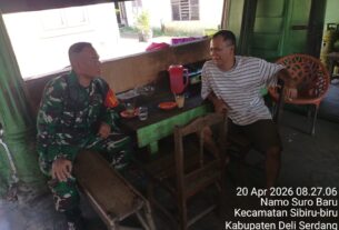 Wantaranews.com – Klambir Lima – Wujud kepedulian terhadap masyarakat binaan terus ditunjukkan oleh Babinsa Desa Klambir Lima Kebun, Serka Kusmiono. Kali ini, ia melaksanakan kegiatan komunikasi sosial (komsos) dengan menghadiri takziah di rumah salah satu warga yang sedang berduka di wilayah binaannya. Sabtu 25.04.2026.