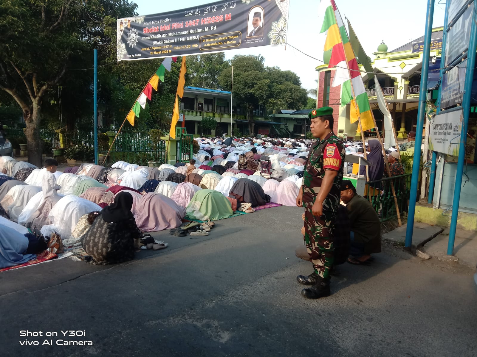 Babinsa Glugur Darat I Amankan Sholat Idul Fitri, Ribuan Jamaah Ikuti Ibadah Dengan Khidmat