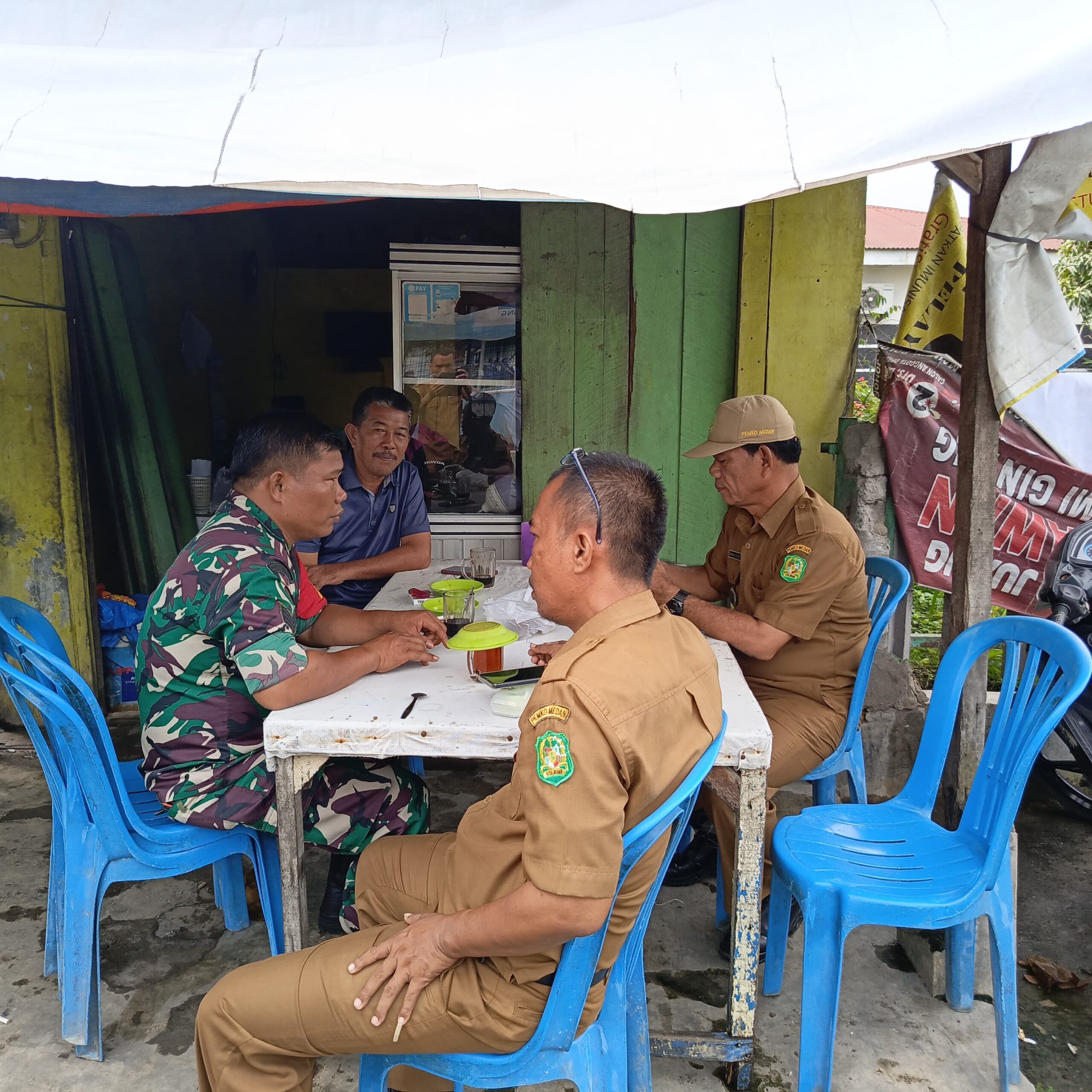 Wantaranews.com – Medan – Serka Antonius Manihuruk Babinsa Koramil 0201-06/MS Kodim 0201/Medan bertempat di Warung Kopi milik Bapak Yahya Sitepu, Jln. Mesjid No 65 Lk.4 melaksanakan Komsos (Komunikasi Sosial) dan silaturrahmi dengan perangkat kelurahan dan warga. Selasa (10/03/2026).