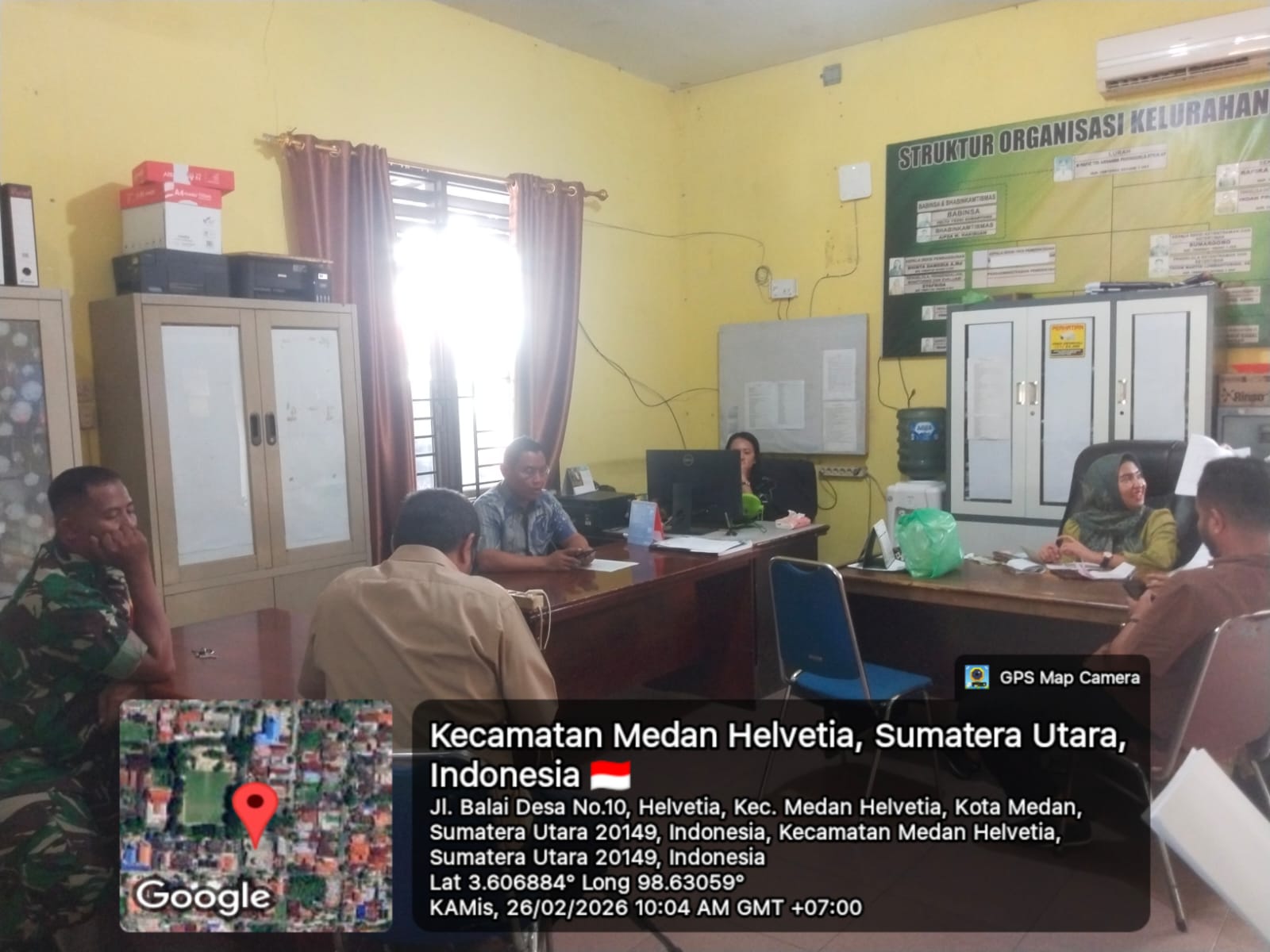 Wantaranews.com – Medan –  Babinsa Serka Supriadi, Bhabinkamtibmas A. Hasibuan Lurah Helvetia, Kepala lingkungan, duduk bersama guna Pererat hubungan dan tali silaturahmi, Babinsa Koramil 0201-06/MS, Kodim 0201/Medan Serka Supriadi melaksanakan kordinasi dan Komunikasi yang baik membahas Hal Kegiatan Kamtibmas aman dan Kondusif,Kegiatan ini Bertempat di Jl.Balai Desa Kel.helvetia Kec Medan Helvetia. Selasa (26/Feb/26).