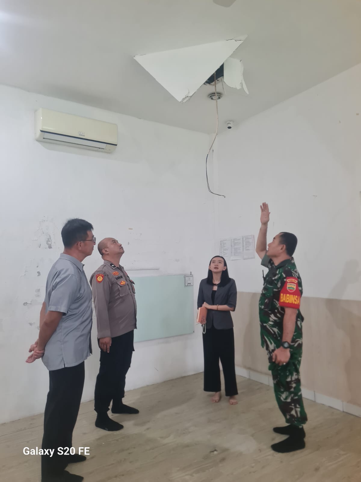 Berdasarkan kronologi, pada Senin (20/04/2026) sekitar pukul 13.40 WIB, petugas kebersihan TK PF mendengar suara benda jatuh di atas atap seng ruangan. Saat dilakukan pengecekan, ditemukan plafon seng telah jebol dan diduga terkena material dari pembangunan gereja di sekitar lokasi. Kejadian tersebut kemudian dilaporkan kepada pihak manajemen TK PF dan diteruskan kepada Kepling setempat untuk ditindaklanjuti.