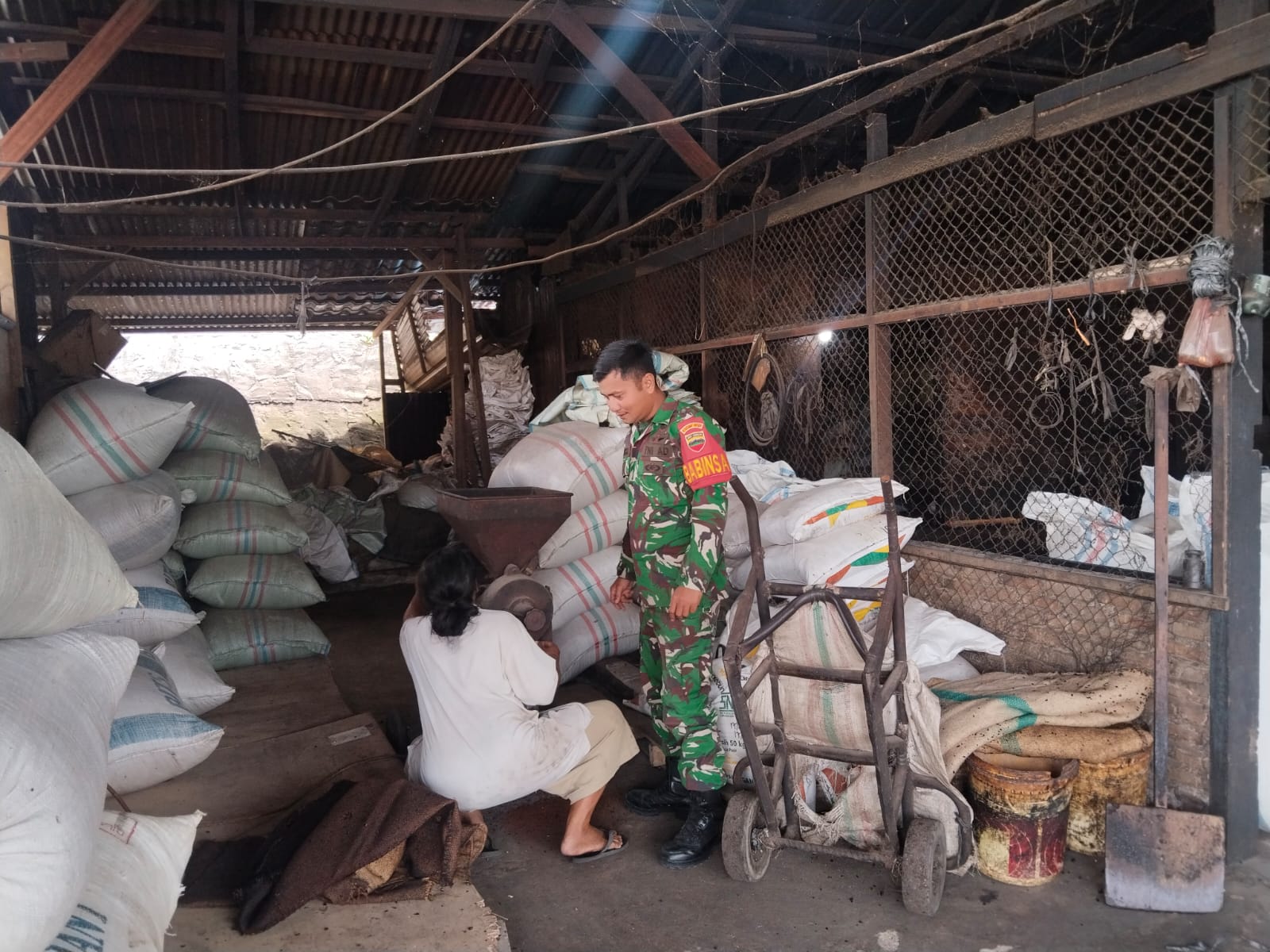 Babinsa Sambangi Sekaligus Bantu Warga Pekerja Penggiling Kopi