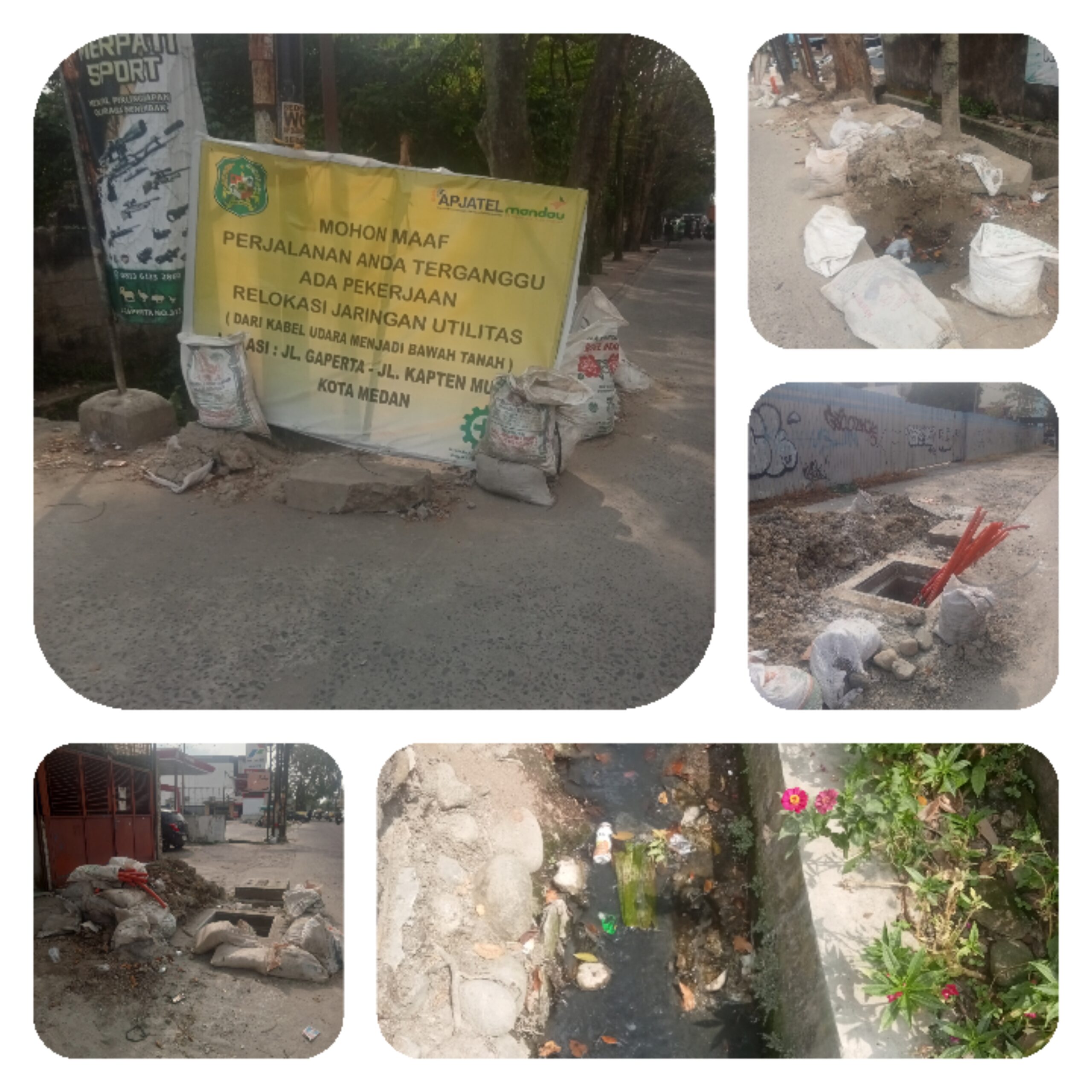 Sangat disayangkan sepertinya proyek relokasi kabel udara ke bawah tanah (SJUT – Sarana Jaringan Utilitas Terpadu) di area Jl. Gaperta – Jl. Kapten Muslim, Medan ini memang sedang dalam kondisi yang sangat mengganggu kenyamanan pemakai jalan /publik.