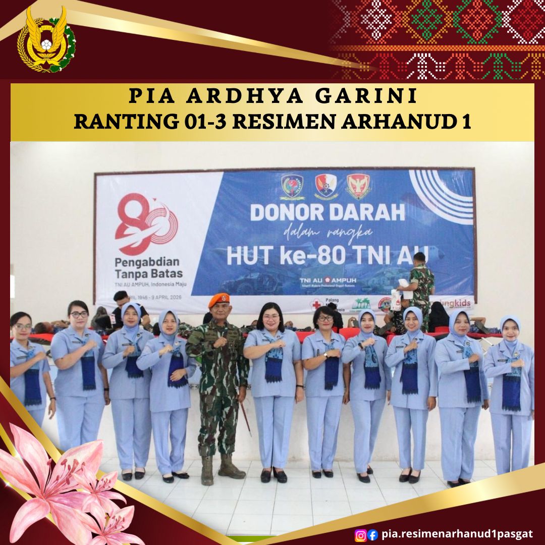 Wantaranews.com – Medan – Dalam rangka memperingati HUT ke-62 Dharma Pertiwi Tahun 2026,Ketua PIA Ardhya Garini Ranting 01-3 Resimen Arhanud 1 Pasgat beserta seluruh PIA Ardhya Garini Ranting 01-3 Resimen Arhanud 1 Pasgat,ikut menyumbangkan setetes darah dalam aksi donor darah yang diselenggarakan di Lanud Soewondo, Kamis 2 April 2026. Kegiatan aksi kemanusian donor darah yang dipimpin […]