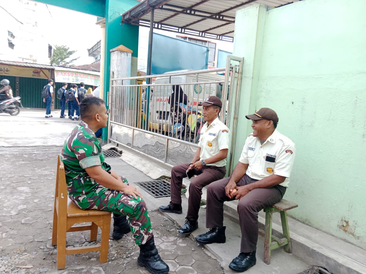 Berkaitan dengan hal tersebut Sertu Juni Arman Purba selaku Babinsa Tanjung sari Koramil 07/Medan Tuntungan kodim 0201/Medan, melaksanakan Komunikasi Sosial sekaligus anjangsana yang bertujuan untuk memupuk keakraban bersama Security Sekolah Muhammadiyah yg berada di jalan Abdul hakim lingkungan lV kel Tanjung sari Kec Medan Selayang Kota Medan.