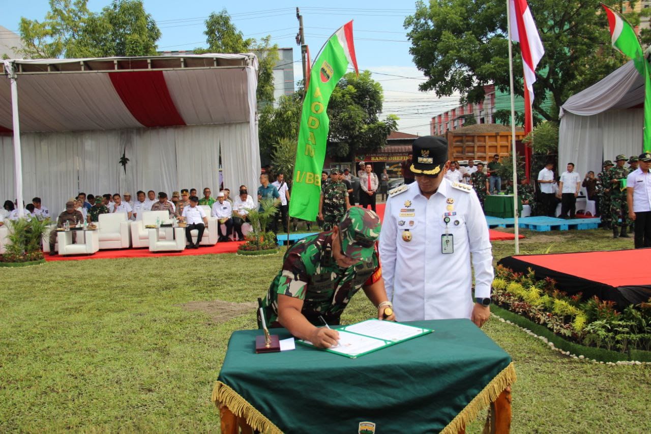 Penandatangan berita acara dimulainya TMMD ke-126 dari Wali Kota Medan kepada Dandim 0201/Medan menjadi simbol resmi dimulainya kemitraan antara pemerintah kota dan TNI dalam program ini.