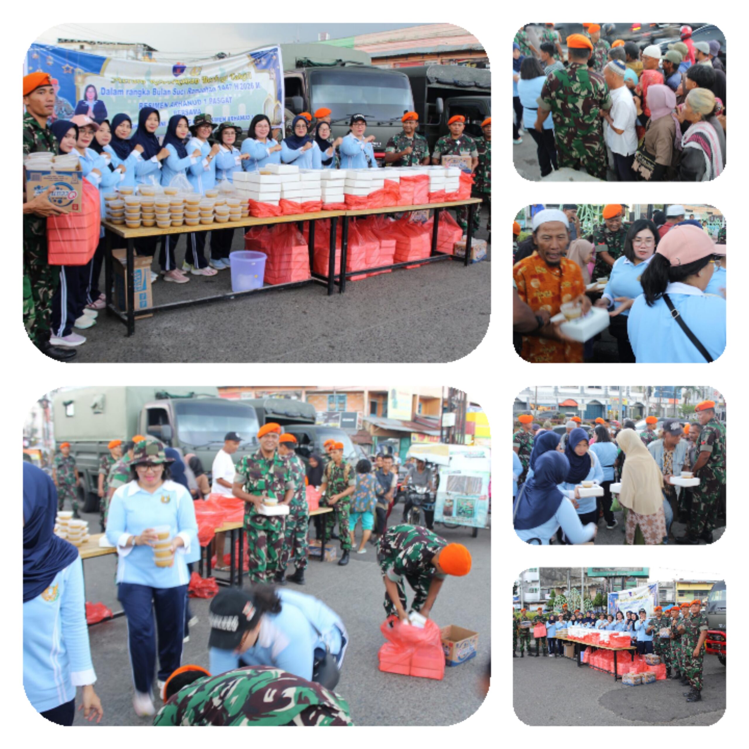 Bulan suci Ramadhan bulan penuh berkah.Dibulan ini setiap orang berlomba mencari pahala dengan berbagai kegiatan.Seperti berbagi takjil dan nasi kotak kepada masyarakat yang dilaksanakan Resimen Arhanud 1 Pasgat bersama Ketua Ardhya Garini Ranting 01-3 Resimen Arhanud 1 beserta Pengurus PIA Ardhya Garini Ranting 01-3 Resimen Arhanud 1,membagikan ratusan nasi kotak dan Takjil kepada masyarakat, pengendara, pedagang dan masyarakat yang melintas menjelang waktu berbuka puasa, di kawasan Pasar Simpang Limun yang berlokasi di Jalan Sisingamangaraja,Medan, Jumat (27/02/2026) lalu.