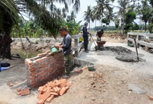 Wantaranews.com – Langkat – Meski peluh bercucuran dibawah panasnya terik matahari, personel Satgas TNI Manunggal Membangun Desa (TMMD) ke-128 tetap melanjutkan rehab lima unit rumah tidak layak huni (RTLH) warga Desa Pasar Rawa Kec.Gebang Kab.Langkat, Senin 27 April 2026.