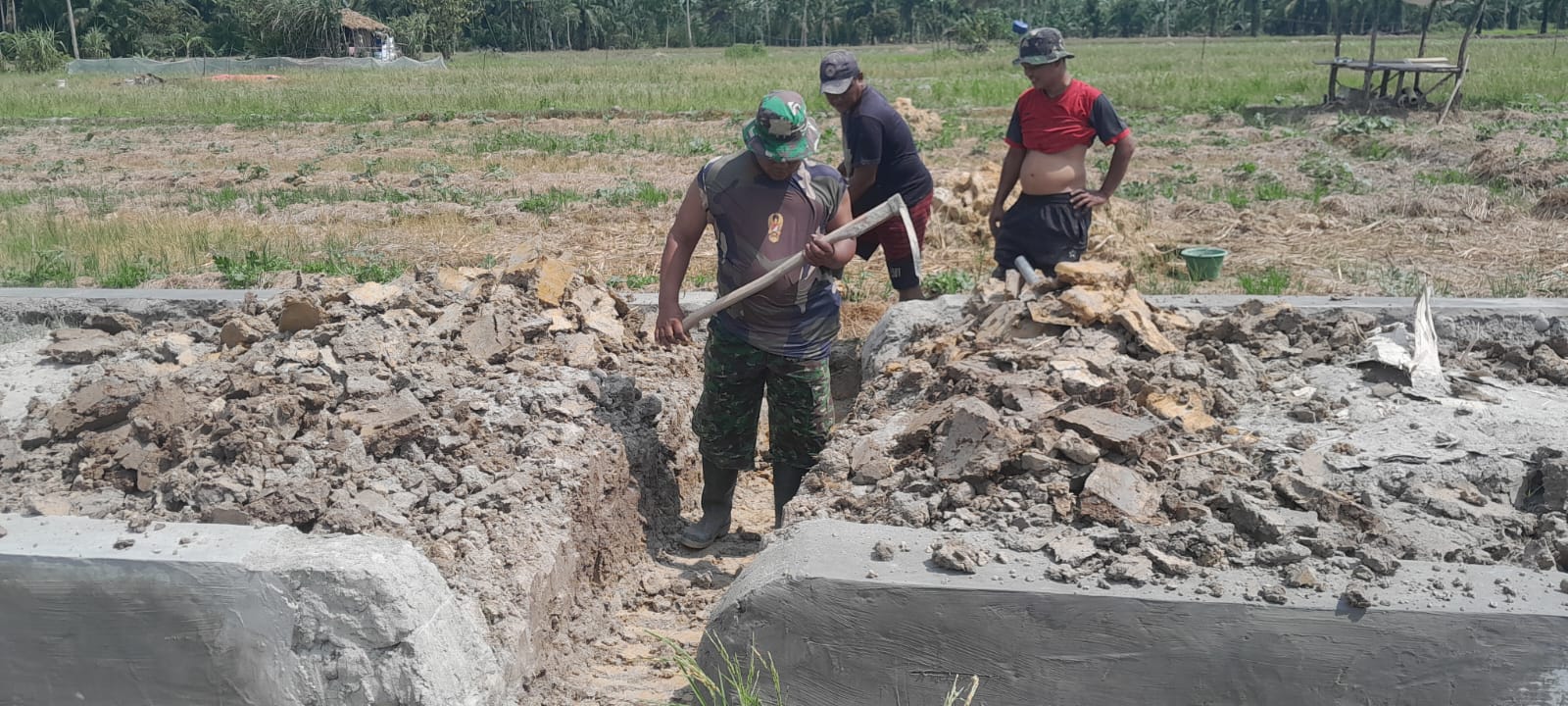 Kegiatan lintas sektoral TMMD Ke-128 TA. 2026 Kodim 0203/Lkt Korem 022/PT Kodam I/BB tersebut melaksanakan pembuatan gorong-gorong di titik 1.Disini dilaksanakan penimbunan bis beton,dan pemasangan batubata untuk kupingan.