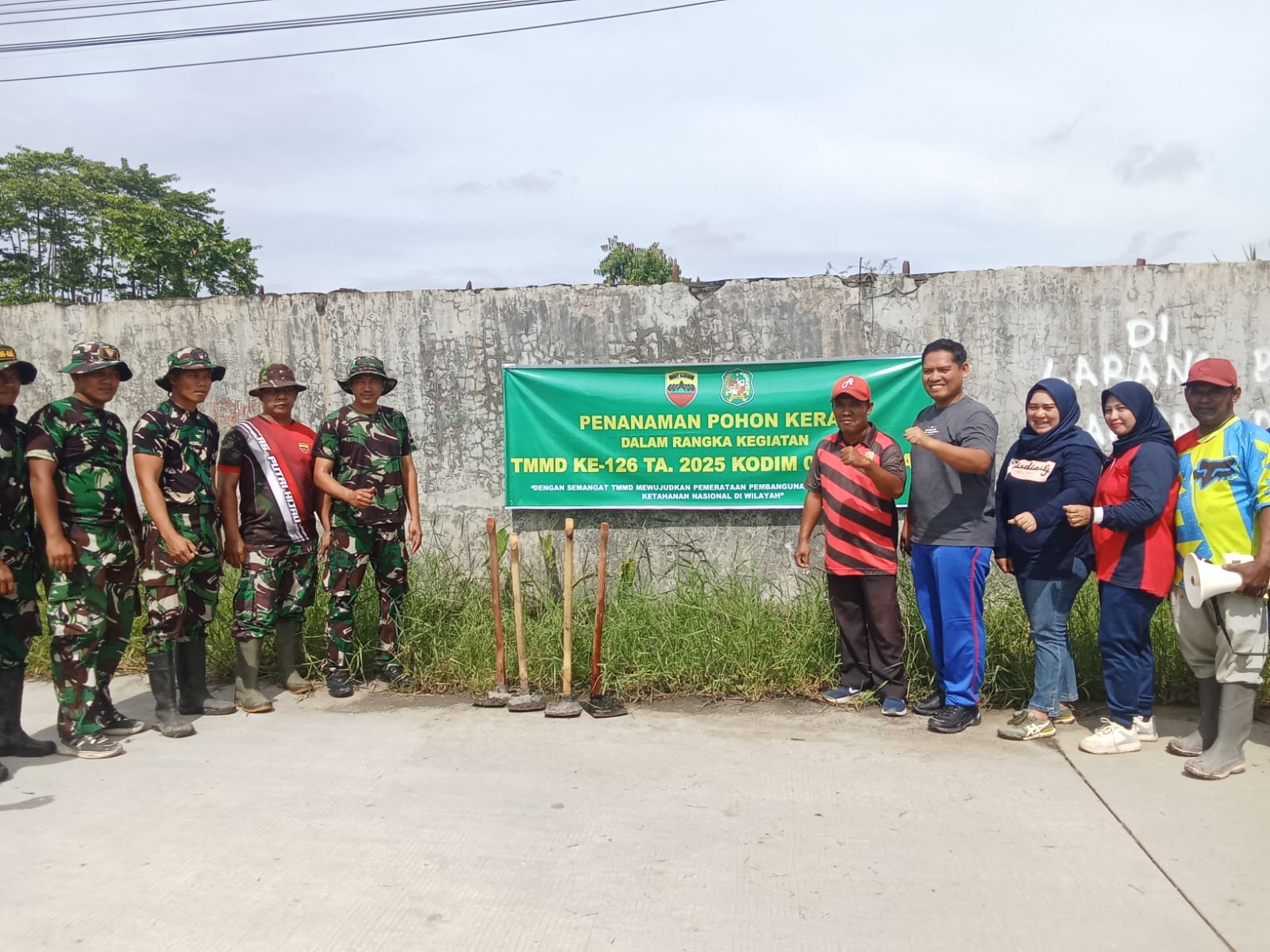 Setelah selesai mengerjakan penanaman pohon keras sebanyak 200 pohon, mereka berfoto bersama sebagai dokumentasi dari kegiatan non-fisik (penghijauan/lingkungan) TMMD ke-126 Kodim 0201/Medan, yang bertujuan meningkatkan kualitas lingkungan dan ketahanan nasional di wilayah tersebut melalui kolaborasi antara TNI dan masyarakat.