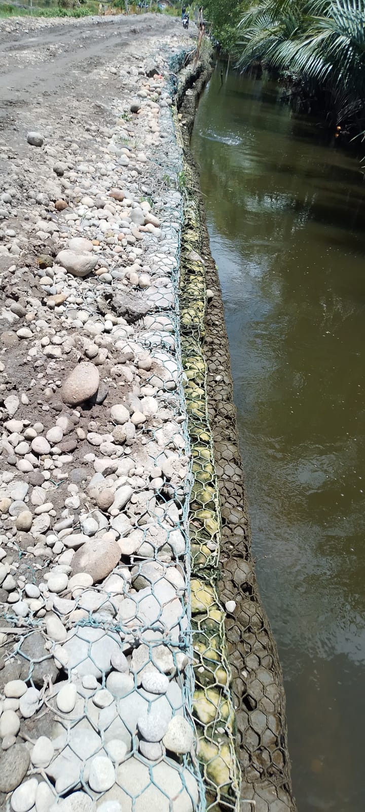 Wantaranews.com – Medan – Bagian yang paling menonjol adalah penggunaan bronjong (kawat galvanis berisi batu) yang dipasang di sepanjang tepi jalan yang menghadap ke air.
