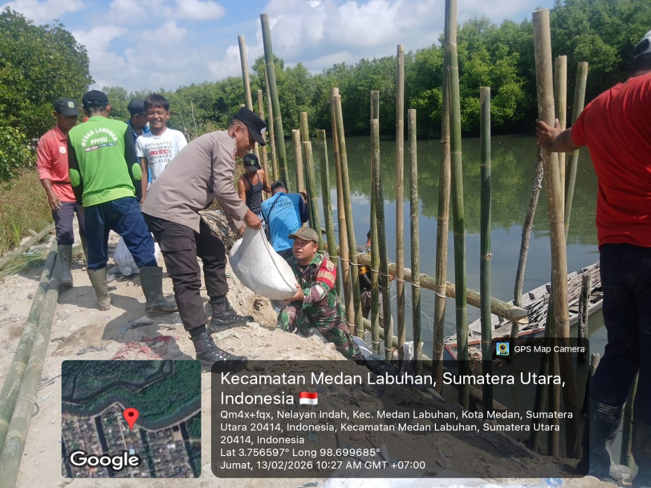 Dalam rangka mengantisipasi dampak banjir Rob. Tiga pilar kelurahan yang terdiri dari Perangkat Kecamatan, Babinsa Kelurahan Nelayan Indah Sertu Taufik Hidayat, Bhabinkamtibmas dan dibantu warga, melaksanakan gotong royong pembuatan tanggul pelindung banjir di Jln Chaidir Kelurahan Nelayan Indah Kecamatan Medan Labuhan.  Jumat 13.2.2026.