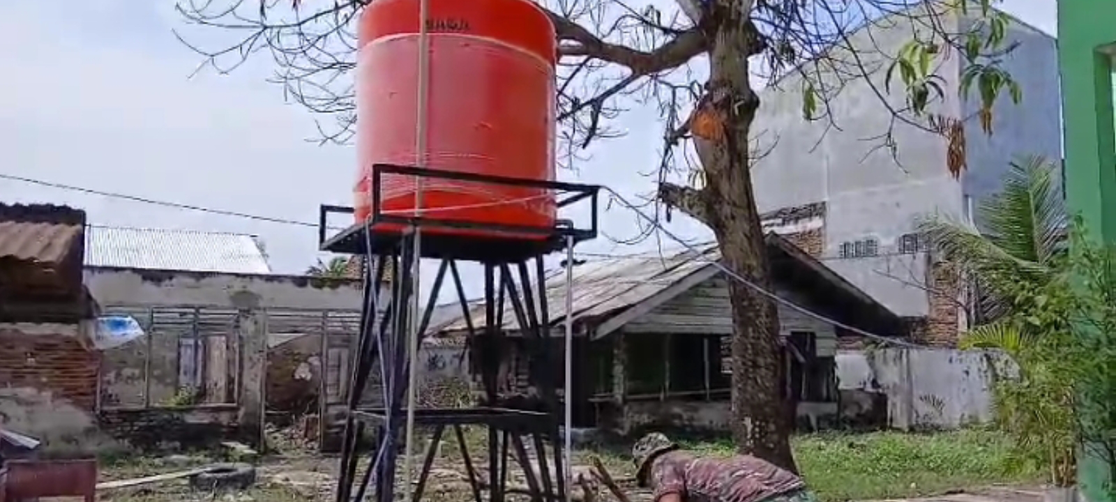 Salah satu unit sumur bor yang telah berdiri kokoh dan tampak bagus berlokasi di SD Negeri 06777 Jalan Young Pana Hijau, Minggu (19/10/2025).