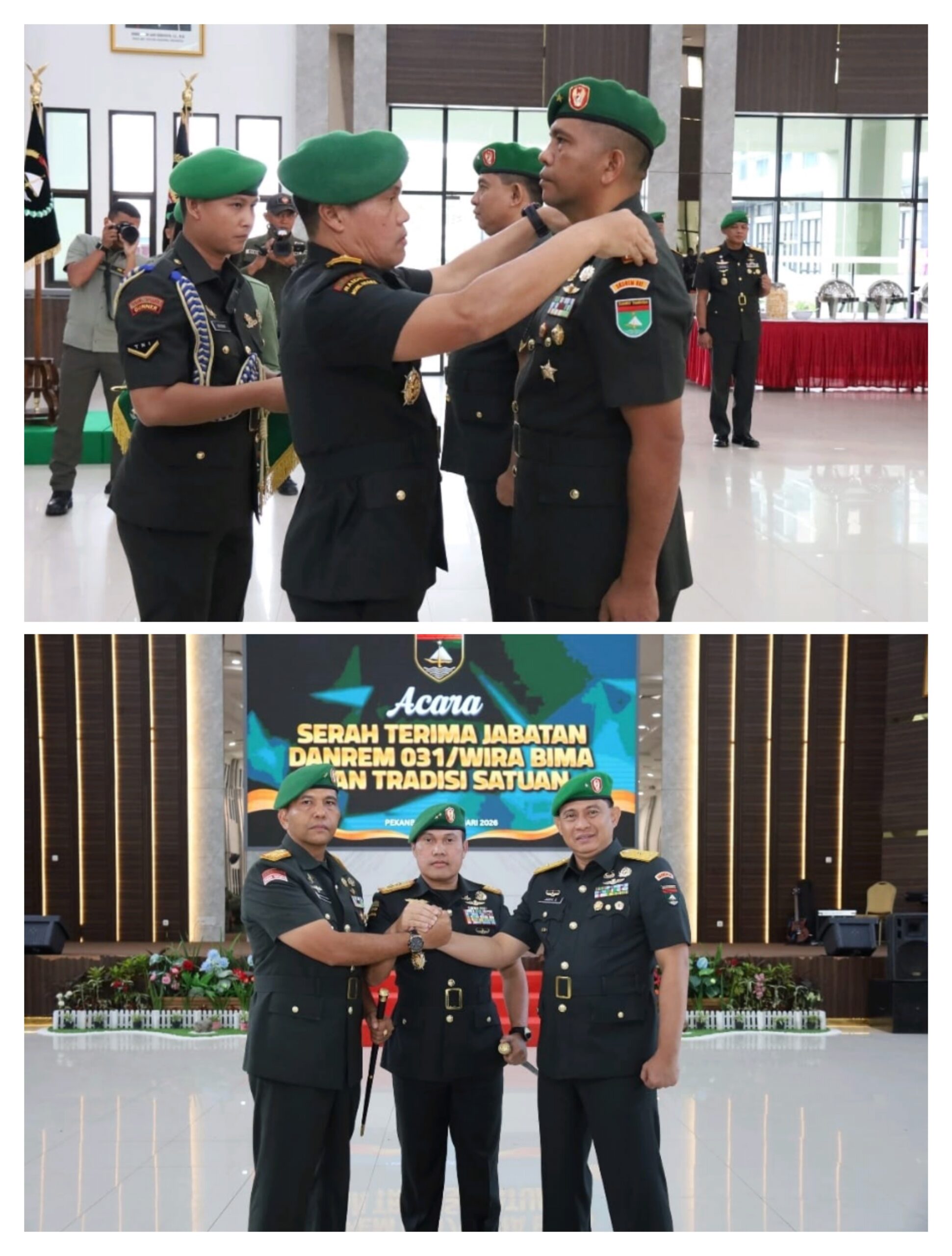Serah terima jabatan ditandai dengan penanggalan dan penyematan tanda jabatan, penyerahan tongkat komando serta Dhuaja Korem 031/Wira Bima, yang menandai peralihan kepemimpinan secara resmi. Seluruh rangkaian kegiatan berlangsung aman, tertib, dan lancar.