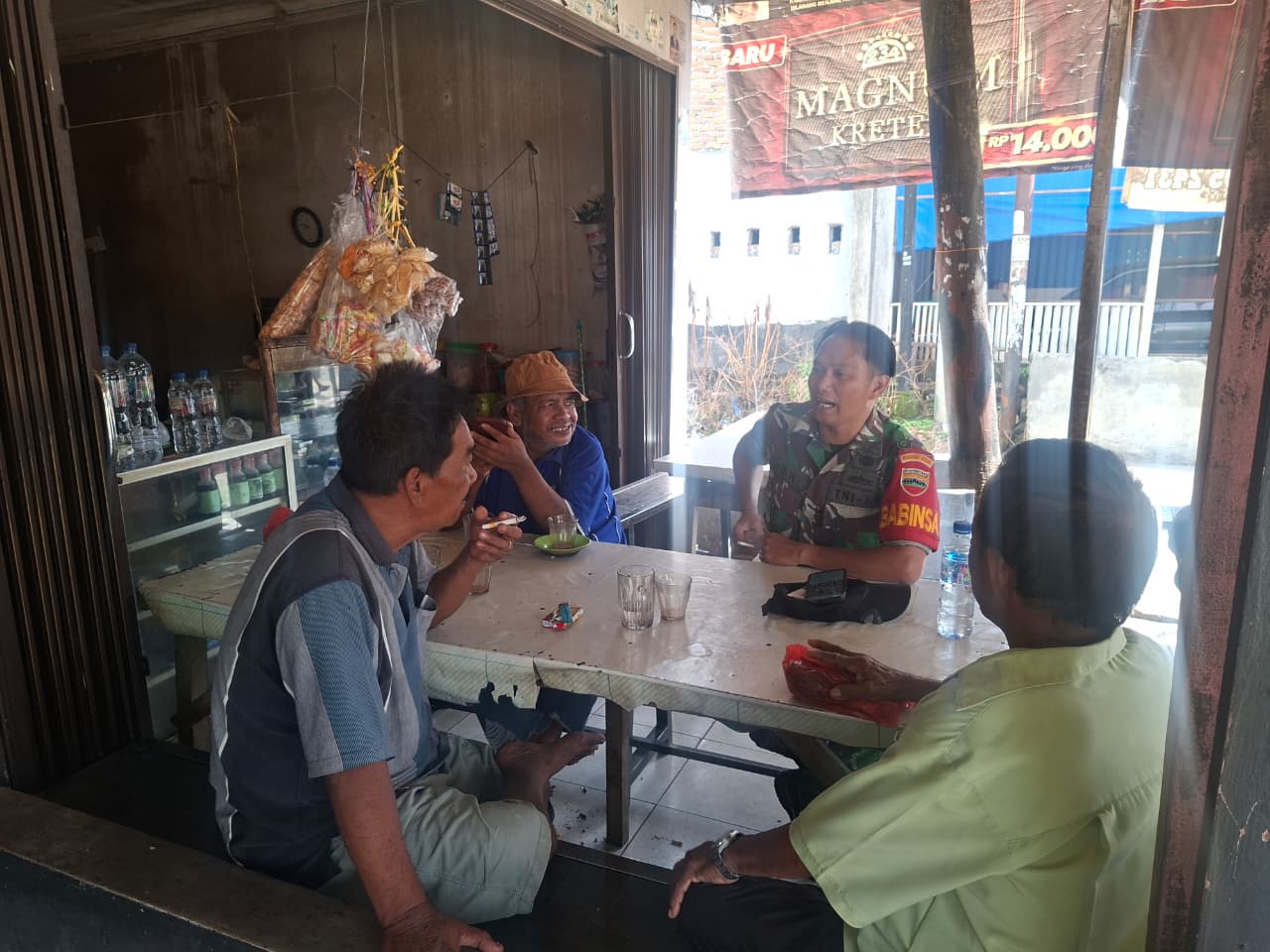 Babinsa memanfaatkan warung kopi sebagai tempat untuk bersilaturahmi dan berinteraksi secara langsung kepada warga sambil menikmati kopi dan ngobrol santai, dengan hadir nya Babinsa ditengah – tengah masyarakat bisa langsung mendengarkan aspirasi warga dan saling bertukar informasi sehingga bisa mengetahui situasi yang berkembang di lingkungan masyarakat.